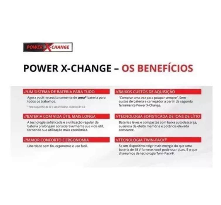 A Linha Power X-Change da Einhell, lhe dá várias opções de baterias de diversas amperagens que podem ser usadas em