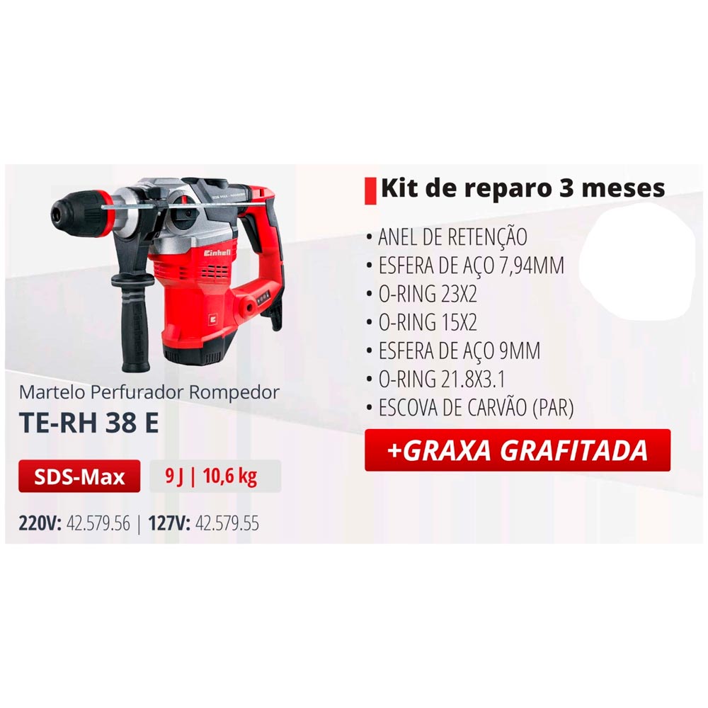 Kit de Reparo p/ Martelo Rompedor TE-RH 38 E Einhell 425795KIT3 3 Meses